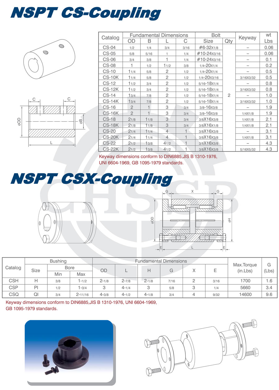 產(chǎn)品范圍: 美標:(CS) 英制尺寸產(chǎn)品(適用于美標市場) CS型聯(lián)軸器