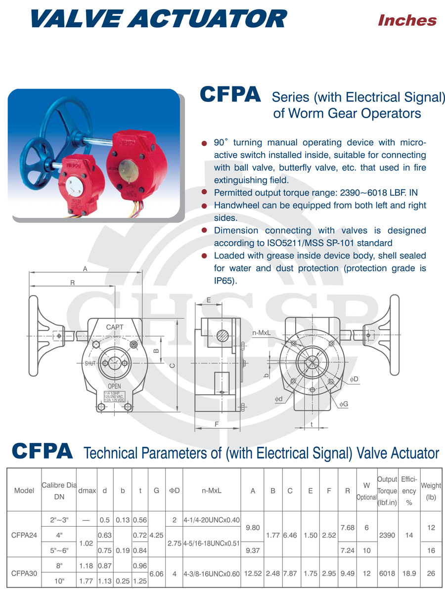 等類型閥門,用于消防系統。允許輸出扭矩范圍為79~790N.m700-7000LB-IN)。手輪可左右安裝。與閥門連